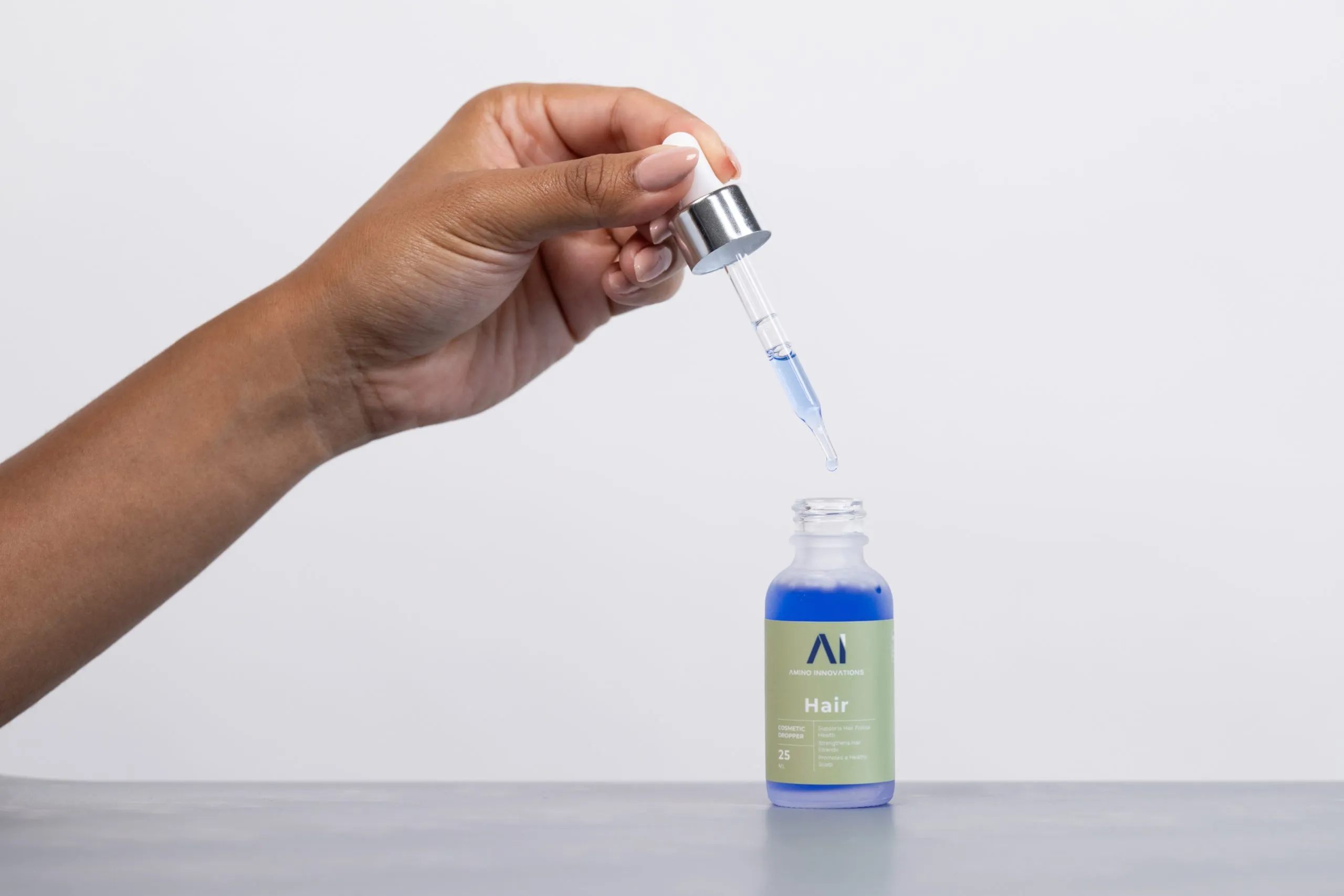 Each cosmetic dropper bottle contains 25 mL—approximately 30 applications.